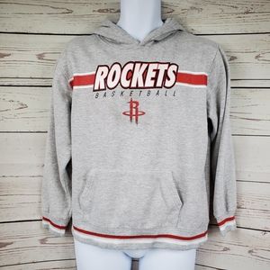 A gray hoodie with a red and white Rockets basketball logo on the front is displayed on a mannequin. The hoodie has a red stripe at the bottom and a red and white logo on the left chest area. The mannequin is set against a wooden background with vertical planks. | NBA HOUSTON ROCKETS gray basketball hoodie boys XL | 05a9df38408ba9dc47b8ae2885c09fc826ec4942e9edaee6501409569ebcdc3e | 001065764539 | 0 | 0 | 50 | 8 | 0 | 0 | |