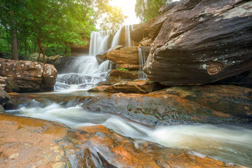 A serene waterfall cascades down a rocky cliff, surrounded by lush greenery and bathed in warm sunlight. | Beautiful waterfall in green forest in jungle, Thailand | 3c0b19d27603ace24e60015e9e0867bc6625550174cbe776415ae68ec69cb481 | 001065764510 | 0 | 0 | 17 | 8 | 0 | 0 | |