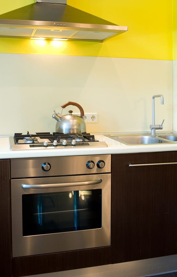 A modern kitchen with stainless steel appliances, including a stove with a pot on it, a sink with a faucet, and a built-in oven with a glass door. The kitchen has yellow and white walls, and the floor is tiled. | Download Gas Stove And Oven In Kitchen Stock Photo - Image: 26500298 | c4ea3f3cee9b9cbc122819974e6cd34d0ea1a8053dcea1415beef391cd2b1f00 | 001065764845 | 0 | 0 | 40 | 12 | 0 | 0 | |