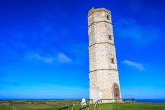 A tall, white lighthouse stands prominently against a clear blue sky. The lighthouse has a conical roof and a small window near the top. The surrounding landscape is lush and green, with a few trees and a fence visible in the foreground. | Vieux phare de Flamborough Image stock | ef9ffbb58891294af715cd9c27917b5ae4a40031879b1cacce64302ffac5970a | 001065764780 | 0 | 0 | 42 | 6 | 0 | 0 | |