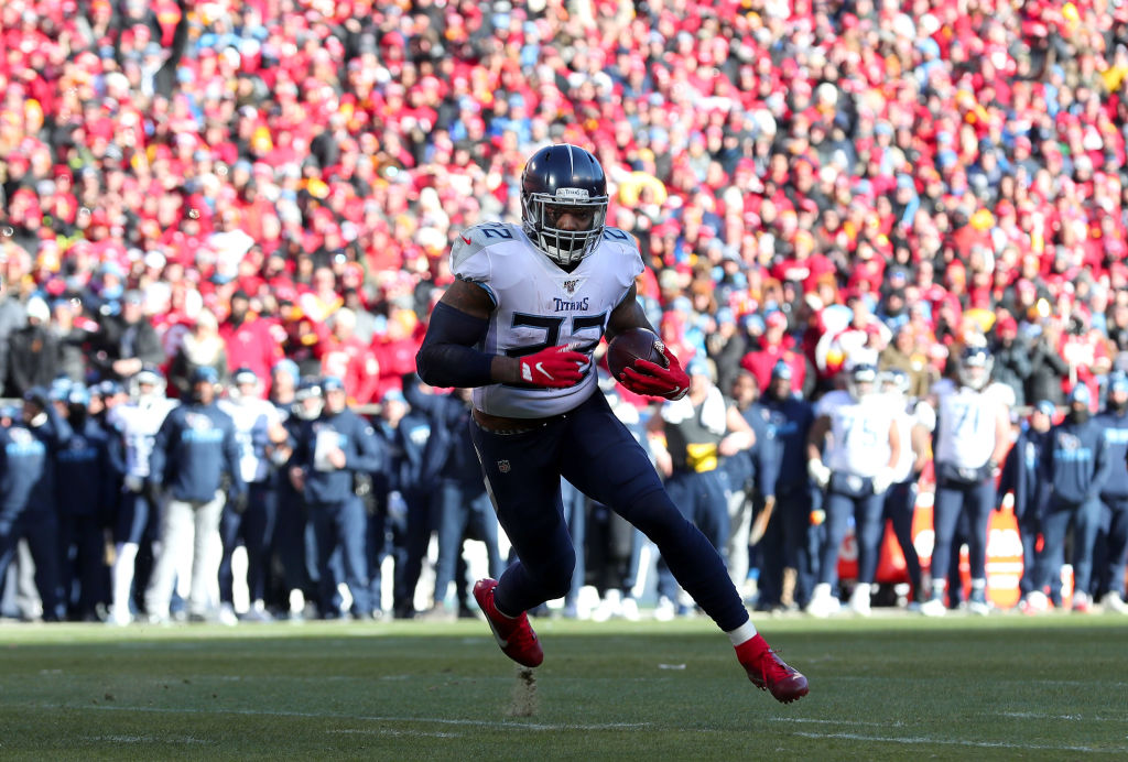 A football player in a white jersey with the number 75 is running on the field with a crowd of spectators in the background. The player is wearing red gloves and red cleats. The crowd is dressed in red and yellow, and the scene appears to be during a game. | Will Derrick Henry Still Be a Tennessee Titan Next Season? | f7e351706dbea8d1a301ae78365620254c007fe2c9d91a9f4bddbc0761753390 | 001065764863 | 0 | 0 | 50 | 10 | 0 | 0 | |
