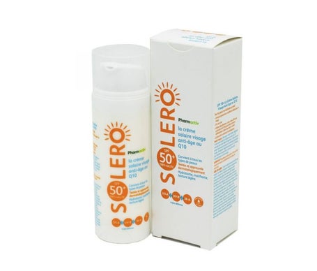 A white box with a blue label containing a white bottle with a blue cap and a white label. The label has the word 'Soleo' in orange and the number '50' in blue. There are orange and blue circular icons on the label, and the text 'Soleo 50' is written in blue. The box is placed against a white background. | Pharmactiv Solero Crema IP50 Anti-Age 50ml | 2dab7a87021acd169fc78b2b9fd409d27c3a0a61b009f463ddc7194f2a1b529b | 001065767027 | 0 | 0 | 60 | 6 | 0 | 0 | |