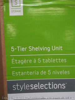 A green storage unit with the words '5-Tier Shelving Unit' written on it. Below the text, there is a list of instructions in French, including 'Etagere a 5 niveaux', 'Establisser l'ensemble', 'Installer les tablettes', 'Etablir les tablettes', and 'Etablir les tablettes'. The unit is part of a storage system called 'Style Selections'. | a storage 5 tier shelving unit | 5925d3c72e203329d3be3ffbff95f3b22216506d252bf6c4ffdb81b7d2ecf717 | 001065768363 | 0 | 0 | 52 | 6 | 0 | 0 | |