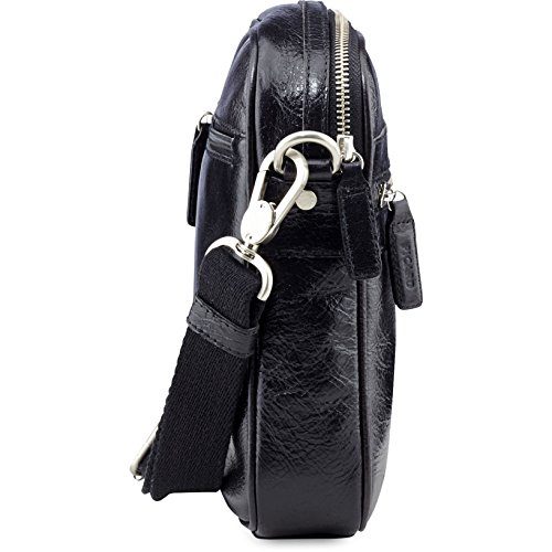 A black leather bag with a zipper closure and a silver zipper pull is shown from the side. The bag has a strap with a silver buckle and a black strap with a silver buckle attached to it. The bag also has a small black pocket with a silver zipper pull on the front. | Picard Buddy Borsa a tracolla II pelle 18 cm Nero | 3557e6a655fe8283fce1c3fa5ad8e8d0c99d6247c43534aa56471b2be01f6281 | 001065768346 | 0 | 0 | 54 | 10 | 0 | 0 | |
