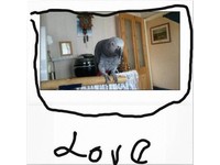 A black and white drawing of a parrot perched on a wooden table, with a white border around the drawing. The drawing is captioned 'LOVE' in the bottom right corner. The background features a framed picture of a landscape and a wooden door. | Lovely African Gray | b96f01484511f215a1fd816ca428f28427548ac34245ba98eaeb581da91743b1 | 001065768493 | 0 | 0 | 43 | 3 | 0 | 0 | |