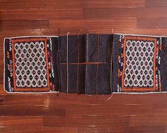 A traditional Moroccan rug with intricate patterns and a rich color palette is laid out on a hardwood floor. | Anatolia Wool Handmade Rug Saddlebag, Embroidery kilim bag, Turkish bohemian saddlebag, Tribal embroidery technique, kilim wool antique bag | 7604a796acfd45acf375d96031d0d9f8251a0b502f346cb2c23a784ad5df3980 | 001065768548 | 0 | 0 | 19 | 18 | 0 | 0 | |