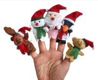 A hand with five fingers, each finger adorned with a different Christmas-themed finger puppet. The fingers are spread apart, showcasing the various puppets. From left to right, the puppets are: a reindeer with a red nose, a snowman with a carrot nose, a Santa Claus with a red hat and white beard, a penguin with a red hat, and a teddy bear with a green bow tie. | Wholesale snowman hand puppet resale online - 5pcs Christmas Finger Puppets Plush Toys Cartoon Santa Claus Snowman Hand Puppet Christmas Deer Stuffed Animals | b1b1a6113d84d87bac9181455ca09cca8da6af6cc804ab90b2de527f5df891ae | 001065768955 | 0 | 0 | 67 | 23 | 0 | 0 | |