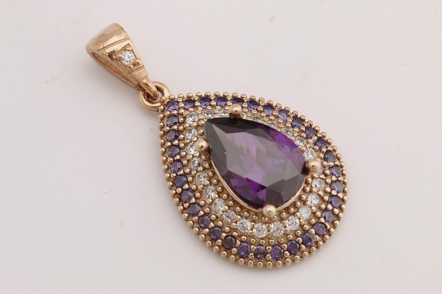 A close-up image of a gold necklace with a large, oval-cut purple gemstone surrounded by a detailed gold filigree setting. The gemstone has a subtle sparkle, and the necklace is set against a white background. | Details about /\xc2\xa0Turkish Handmade Jewelry Small Drop Amethyst Topaz 925 Sterling Silver Pendant | 008fdb7a6c35690333166817aeb85f972399715007f478adc4c3d5016666e110 | 001065769066 | 0 | 0 | 35 | 13 | 0 | 0 | |
