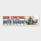 A vintage-style poster with a red and blue color scheme, featuring a cartoon character with a gun in one hand and a hand with a gun in the other. The character is wearing a hat and a vest. The text reads 'GUN CONTROL BOTH HANDS!' with the words 'GUN' and 'CONTROL' in red, and 'BOTH HANDS' in blue. The background is a plain light color. | New Gun Rights Gear Bumper Sticker | 55198eccc2e998774bee2813a19f985dea4da8d54d7f17de219ba15a58cf0c58 | 001065769033 | 0 | 0 | 65 | 6 | 0 | 0 | |
