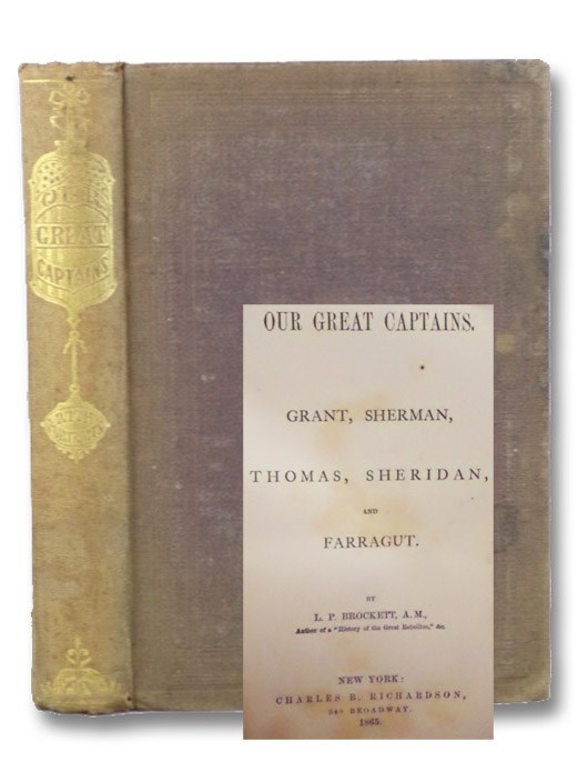 A vintage book titled 'Our Great Captains' with a bookmark inserted into it. The book has a brown cover with gold detailing and a bookmark with a gold design and text. The bookmark is placed at the beginning of the book, and the book is lying on a surface with a plain background. | Our Great Captains: Grant, Sherman, Thomas, Sheridan, and Farragut., Brockett, L.P. [Linus Pierpont] | 8494848a673120576c6c99dabc47f8a43453f71a76af672225c31bc4fbd11149 | 001065769046 | 0 | 0 | 53 | 13 | 0 | 0 | |