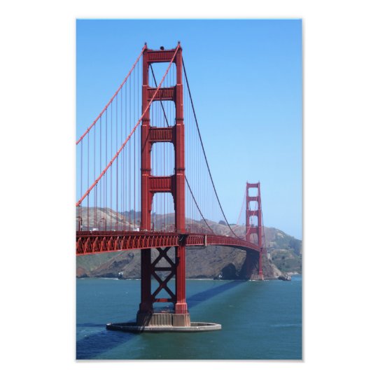 A red suspension bridge with multiple cables and towers spans over a body of water. The bridge is surrounded by green hills and the sky is clear and blue. There are no boats or people visible in the water. | San Francisco Golden Gate Photo Print | cd8939f115d7d7baa1d6a9d764df88d205bc031a6975d56bdc85cf023bd8e1d6 | 001065769211 | 0 | 0 | 39 | 6 | 0 | 0 | |