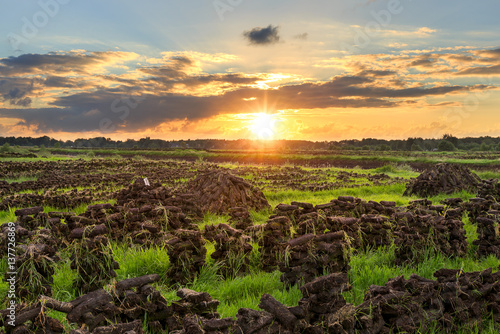 A field of dried, brown grass with a few green patches, under a sky with a setting sun and scattered clouds. | Poster Marron chocolat Peat on a meadow near Wiesmoor | 426aba25c4e5328fa1fb4492d38e19c3b5be5444e7be5ca67d5937da0b184953 | 001065769413 | 0 | 0 | 21 | 9 | 0 | 0 | |