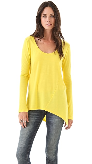 A woman is wearing a bright yellow long-sleeve top with a relaxed fit and a V-neckline. She has a ring on her left hand and is standing with her hands by her sides. | Nicholas Ava Asymmetrical Top | 525606c9f1bd1960cb497362feb031c8a52e09629b3212f9b871dc5e3ef8924c | 001065769441 | 0 | 0 | 33 | 4 | 0 | 0 | |