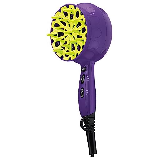 A purple and yellow electric hairbrush with a black handle and a black cord is displayed against a white background. | Bed Head Curls in Check 1875 Watt Diffuser Hair Dryer - 41Ke0zBvBJL - Bed Head Curls in Check 1875 Watt Diffuser Hair Dryer | ddc5435395cdfa596d4e17f347d413653bbeebb3eb6899e2bdee15b8db2010f5 | 001065769436 | 0 | 0 | 20 | 23 | 0 | 0 | |