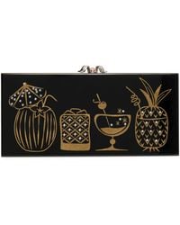 A black handbag with gold accents and a gold clasp, featuring a pattern of various fruits and a pineapple on the front. | Charlotte Olympia - Drink Up Penelope! Embellished Perspex Clutch - Lyst | 892280a6396cdc636a7e1dfdf295e3ad4c35f8ac8abb0812f5fc87750133a4a3 | 001065770264 | 0 | 0 | 22 | 11 | 0 | 0 | |