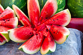 A close-up image of a slice of watermelon with a star-shaped pattern carved into it. The watermelon is surrounded by other slices, and the image has a warm, natural color palette. | Slices of red watermelon on a fruit and vegetable street market | 32e09cfa2f25367a0c78247cda95b91a48bff50b989527ff3423dd1e3beb52eb | 001065770142 | 0 | 0 | 31 | 11 | 0 | 0 | |