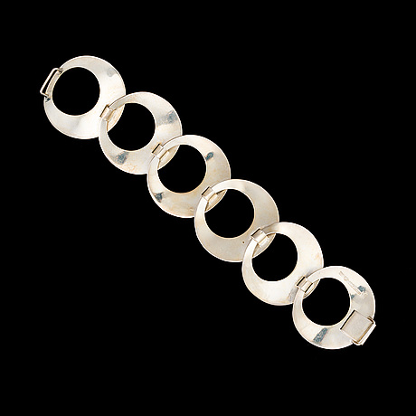 A silver chain with a series of interconnected circular links is displayed against a black background. | Mirjam salminen, a bracelet, sterling silver, kaunis koru 1970 | d2c2b89fc81e765b82fddcd2d5199e40775fb3f831358466a68f0aa73ef09f9c | 001065745245 | 0 | 0 | 16 | 9 | 0 | 0 | |