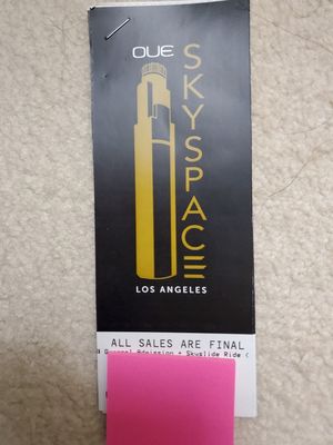 A tag with the word 'Que' and the phrase 'SkySpace Los Angeles' is attached to a pink piece of paper. The tag is yellow with a black border and a black background. The paper is pink and has a white border. The tag and paper are placed on a surface with a beige carpet. | (2) Skyspace GA tx plus slide for Sale in Los Angeles, CA | ca61d3d99c9d9d11086fbe7781a8a69eaa8595b27fa4731bd968719d356f4375 | 001065745338 | 0 | 0 | 54 | 12 | 0 | 0 | |