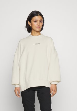 A woman is standing against a white background wearing a white oversized sweatshirt with a black label on the front and black pants. | BOLD UNISEX - Sweatshirt - gardenia | 6cce1dc30ae6f46054cbf44eeb4d71c0f0095900b0c5786d5bf4635613dac2fb | 001065770932 | 0 | 0 | 23 | 6 | 0 | 0 | |