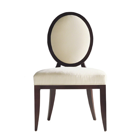 A wooden chair with a white cushioned seat and backrest, featuring a round, ornate mirror design on the backrest. | Baker Furniture - Oval X-Back Dining Side Chair - 3440 | af6fd0b59f0c2214099219d5ed198b1f92fed5bb69e98606fbb3a2bbc5dba70f | 001065771080 | 0 | 0 | 19 | 10 | 0 | 0 | |