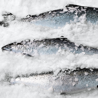 A close-up of three fish with visible scales and fins, lying on a snowy surface. The fish are positioned in a way that their bodies are parallel to each other, and the snow is scattered around them. The background is out of focus, emphasizing the fish and the snow. | Saumon Ecosse Label Rouge | 643ce10af22592cc4531ab6fef27fefd83f9e9b06cb4c550d5de18c6d65ce37b | 001065771095 | 0 | 0 | 49 | 4 | 0 | 0 | |