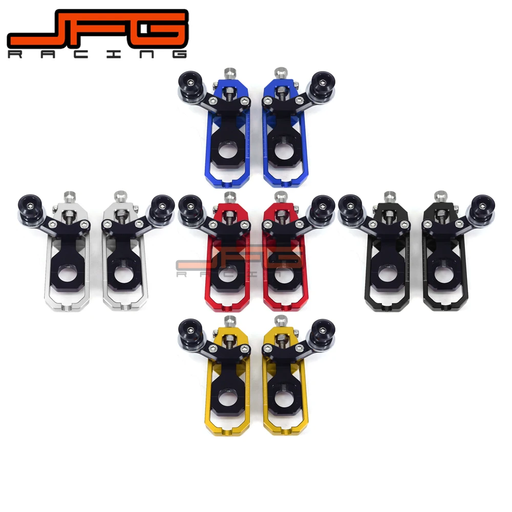 A set of colorful, shiny, and new-looking bicycle chain links is displayed against a white background. The chain links are arranged in a cross-like pattern, with each link featuring a different color: blue, red, yellow, and black. The image is well-lit, highlighting the vibrant colors and the clean, polished appearance of the chain links. | Chain Adjusters Tensioners With Spool Fit for KAWASAKI ZX-10R ZX10R ZX 10R 2008 2009 2010 Motorcycle | b89e29c751c458527d9bb268a3ff61d268969e5d5d2b93ecd70d2a6f1cd297e0 | 001065771530 | 0 | 0 | 54 | 16 | 0 | 0 | |