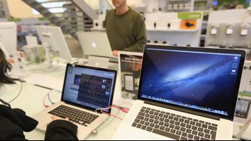 A person is sitting at a desk with two open laptops in front of them. The laptop on the left is black with a visible screen displaying a wallpaper, and the laptop on the right is white with a screen displaying a wallpaper of a galaxy. There are various items on the desk, including a mouse, a keyboard, and a cup. The person is wearing a black shirt and is using the laptop on the right. In the background, there is a person standing and a staircase. | FAA bans some MacBook Pro models from flights due to possible fire risk | e5affae01c767f56d92ec697ce82d5a71c9ab9ad5f9d520fd9816b89f4e42c9f | 001065771584 | 0 | 0 | 87 | 13 | 0 | 0 | |