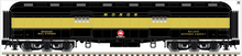 The first image depicts a stylized illustration of a train with a black and yellow color scheme. The train has a flat front with a black roof and yellow stripes running horizontally across it. The word 'KITE' is written in large, bold letters on the roof. The train's body is divided into sections with black and yellow stripes, and there are three windows on each side. The train's wheels are visible at the bottom, and there are two sets of chains hanging from the bottom of the train. The background is a plain white color. | Atlas O 60' Monon Baggage Car, 3 rail or 2 rail | 9b45015edc2cb15c1be55c5e18c307f9eb29cb16c6928cee7468a2d8064ea50c | 001065771924 | 0 | 0 | 95 | 11 | 0 | 0 | |