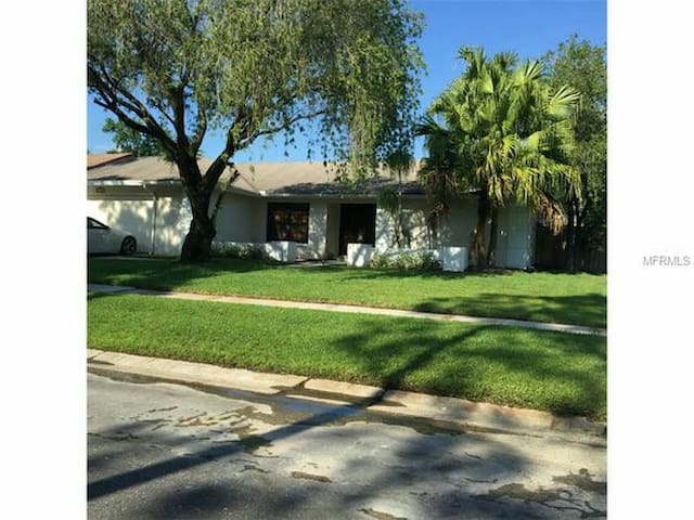 A suburban house with a white picket fence and a well-manicured lawn. The house has a beige exterior with a dark roof and a chimney. There is a large tree with green leaves to the left of the house, and a smaller tree with green leaves to the right. The lawn is green and there is a sidewalk in front of the house. The sky is clear and blue. | Beautiful Carrollwood Village - Tampa - Casa | b97cb99d38cd31cd0c53a89c16351254a13bcc8d36c1f87c363e6695818f8fb3 | 001065772084 | 0 | 0 | 69 | 7 | 0 | 0 | |