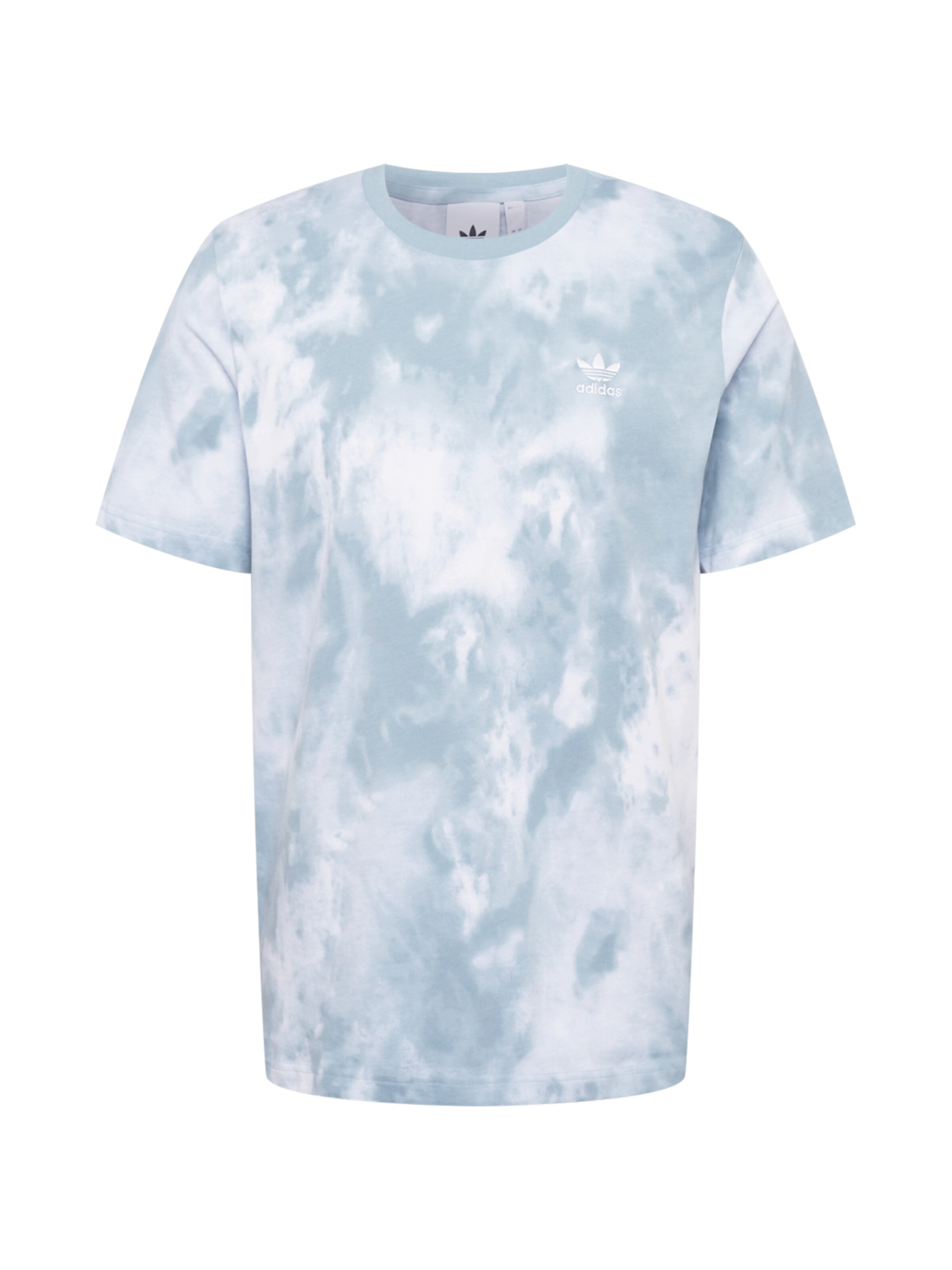 A white t-shirt with a blue tie-dye pattern is displayed against a white background. The t-shirt has a round neckline and short sleeves. The tie-dye pattern is a mix of blue and white, creating a cloud-like effect. There is a small Adidas logo on the upper left side of the t-shirt. | ADIDAS ORIGINALS Shirt 'Essentials Trefoil ' in Grau: predn\xc3\xa1 strana | c0ca45ae7a2200af6948b770578be0fcffeb2b1bd91f305e36a2d7b2d5dc25dd | 001065772215 | 0 | 0 | 51 | 10 | 0 | 0 | |