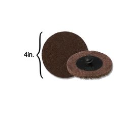 A black and white image featuring two circular objects with a black center and a brown outer rim. The objects are placed on a white background with a vertical line drawn to the left of the leftmost object. The line is labeled '4 in.' in white text. | 3M Scotch-Brite Disk 4'' ROLOC Coarse Brown (10 Pack) | 41591460e1a2b1a8276430c3fc3d0b269109a4bacb802eaba979ce50aa3d84a2 | 001065772370 | 0 | 0 | 47 | 9 | 0 | 0 | |