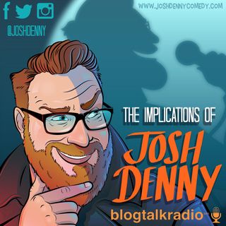 The second image is a stylized illustration of a man with a beard and glasses, who appears to be a comedian. He is smiling and looking directly at the viewer. The background features a silhouette of a microphone and a shadowy figure, possibly representing an audience. The image has a cartoonish quality with bold outlines and a vibrant color scheme. The text 'The Implications of Josh Denny' is prominently displayed at the top, and the image is attributed to 'QuJedi' and 'BlogTalkRadio'. | #34 - If You Incest w/Delanie Fischer | c95bef643f9117bf9f910362669c6abed0a58876626870bf841deb34b62b8432 | 001065772625 | 0 | 0 | 82 | 7 | 0 | 0 | |