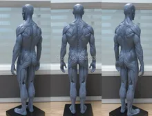 A series of three side-view images of a muscular humanoid figure with a metallic appearance. The figure is standing on a wooden floor with a dark background. Each image shows a different section of the figure's body, with the first image focusing on the head and upper torso, the second on the lower torso and upper legs, and the third on the lower legs and feet. The figure is positioned on a black platform, and the images are separated by vertical lines. | 1:6 30cm PU Human skeleton anatomical Painting model for sale Anatomical Anatomy Skull Sculpture Head body Muscle Artist | 9a2db9cd02f460ce77c144d644c9934640879b6790b4ec2ac8851dc6d948a1c6 | 001065772738 | 0 | 0 | 82 | 18 | 0 | 0 | |