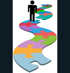 A stylized illustration of a person standing on a path that flows into a river of puzzle pieces. The puzzle pieces are in various colors and are arranged in a way that suggests a continuous flow from the path into the river. The person is facing away from the viewer, looking towards the puzzle pieces. The background is a plain, light color. | person problem missing piece puzzle find solution vector image | ec3dfc786c03540c21cecdb728584ef5c1431f7e990972ce4788df64d03ae9f1 | 001065772731 | 0 | 0 | 62 | 9 | 0 | 0 | |