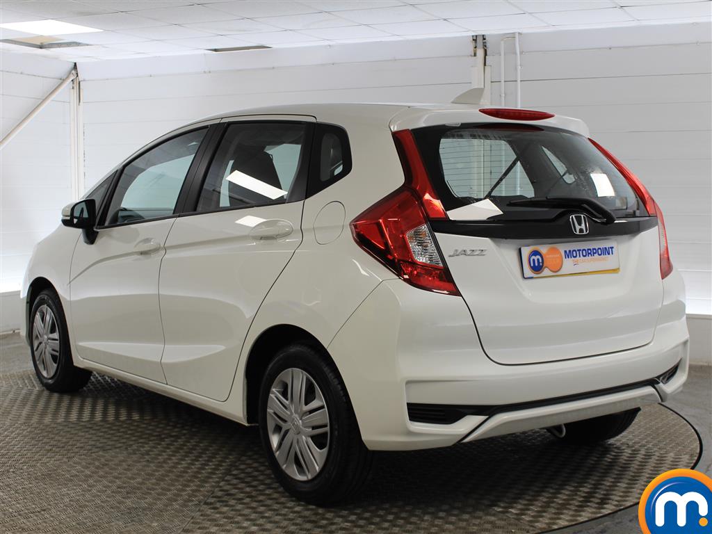 A white Honda Fit is parked in a showroom with a white background. The car is positioned on a checkered floor, and there is a sticker on the rear window with the text 'MOTORS' and an orange circle. The car's headlights are off, and the interior is not visible. | Honda Jazz S Manual Petrol Hatchback - Stock Number (1005437) - Passenger side rear corner | e146293bf612dbf834e2b0f6edbf740aa8848c1a5bc12b7087c5b15496074a7f | 001065772659 | 0 | 0 | 49 | 15 | 0 | 0 | |