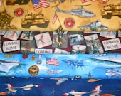 A collection of three different blue and gold patterned fabrics with various military-themed designs. The top fabric features a gold and blue pattern with images of a helicopter, a tank, and a fighter jet, along with American flags and other patriotic symbols. The middle fabric has a blue and gold pattern with images of a fighter jet, a tank, and a helicopter, along with a 'COMING HOME' message and other military-themed designs. The bottom fabric has a blue and gold pattern with images of a fighter jet, a tank, and a helicopter, along with a 'COMING HOME' message and other military-themed designs. | SCRUB TOPS, *MILITARY #1*, Your Choice (Please Read Body of Listing) | e7a055312c463e795cc6c212c0f04b026dc9729a5480846eb37c9178ec94e7d2 | 001065772666 | 0 | 0 | 102 | 11 | 0 | 0 | |