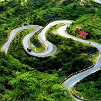 Aerial view of a winding road through a lush green hillside with a small red house on the right side. The road is surrounded by dense vegetation, and there are no visible vehicles on the road. | Haridwar - Dehradun - Mussoorie Local SightSeeing Package | cee272802ad1ca2b1dc2d885730e7d8d93acac4680b36c62e695a71a1d3228b5 | 001065772695 | 0 | 0 | 36 | 8 | 0 | 0 | |