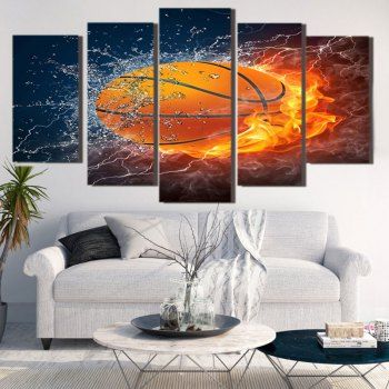 A modern living room with a large window on the left wall, a white sofa with black cushions in the center, and a small round coffee table in front of it. The room has a light gray carpet and a dark gray rug on the floor. On the right wall, there is a large, framed, multi-panel artwork depicting a basketball with water splashes around it. The artwork is divided into four panels, each with a different perspective of the basketball. The room has a minimalist design with a few decorative items, including a potted plant on the left, a vase with branches on the coffee table, and a small plant on the | Burning Football Printed Unframed Decorative Canvas Paintings - COLORFUL COLORFUL | 4ce6d5f7be533324e20a3c481ff89e73f8a3e4a6b82636a330c661152ddb0e40 | 001065773140 | 0 | 0 | 112 | 10 | 0 | 0 | |