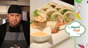 A chef is standing in a kitchen with a plate of shrimp rolls in front of him. The plate has a variety of shrimp rolls with lettuce and tomato, and there is a small bowl of sauce next to it. The chef is wearing a black apron and a chef's hat. There is a green and white price tag on the right side of the image with the number '360' and the word 'price' in a foreign script. | cover: Ch Hiwat Le360 : Wraps Sushi | faf118089bcf40bd5ccd506549fd28b22eafca5d630490b01fc43628ec2b966c | 001065773079 | 0 | 0 | 78 | 7 | 0 | 0 | |
