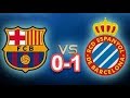 The image features a graphic design with a blue background. On the left side, there is a stylized red and blue soccer team logo with the word 'F.C.' above it and the word 'BARCELONA' below it. On the right side, there is a similar logo with the word 'ESPANYOL' above it and the word 'BARCELONA' below it. The two logos are separated by a red and white '0-1' graphic in the center, indicating a score of 0-1. | espanyol vs barcelona 1-0 goals & highlights 17/01/2018 HD YouTube | d7028418b47f8f475f6d63bbba4fd0dfe3324d96967fcdc03b6d30e0a1fc42a0 | 001065773130 | 0 | 0 | 77 | 10 | 0 | 0 | |