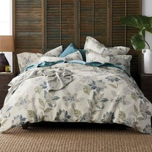 A bedroom scene with a large bed covered in a floral patterned duvet. The bed has multiple pillows with a mix of blue and white patterns. The headboard is made of wooden slats, and there is a woven basket on the left side of the bed. A potted plant is placed on the right side of the bed, and a small table with a lamp is visible in the background. The floor is covered with a textured rug. | The Company Store - Grady Floral Linen Duvet Cover Full - $83.22 | 3e8413d5cabd042c3d52c1cafc4cff6fc4cbfd89be8d2a7a4e177a863833bd6e | 001065774817 | 0 | 0 | 78 | 12 | 0 | 0 | |