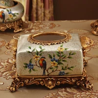 A gold and white porcelain box with a floral design and a bird motif is displayed on a table with a gold and beige patterned tablecloth. | New garden resin, European retro tissue box, American paper box, home accessories, napkin box, storage box | 8dc20b61a099bf2389edab6ec31a0013b2154c7ab1423d13dd6f46f6f00f9ca6 | 001065774986 | 0 | 0 | 26 | 16 | 0 | 0 | |