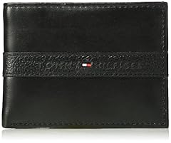 A black leather wallet with a silver logo on the front is lying on a white surface. | TOMMY HILFIGER is one of the world\xe2\x80\x99s leading designer lifestyle brands and is internationally recognized for celebrating the essence of classic American cool style, featuring preppy with a twist designs. Founded in 1985, Tommy Hilfiger delive... | 3a56d2233181e96282d3c205fe05a6e738014e82f9eaa3c298fbbe9a5ccceb41 | 001065774950 | 0 | 0 | 17 | 36 | 0 | 0 | |