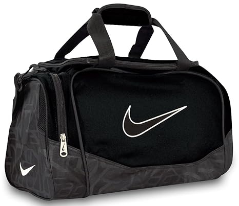 A black and gray Nike duffel bag with a white Nike swoosh logo on the front. The bag has a zipper closure and two side pockets with zippers. The main compartment is unzipped, revealing a black interior with a patterned lining. The bag is set against a white background. | Nike Brasilia 5 Duffel Grip S BA3234 067 Mens Sport bag Shoulder bag Training 56310490162df | a4061ab6aa4326cfe076b691a028e88f793583bb8ba9d84bc384324b6b06fa7e | 001065774948 | 0 | 0 | 49 | 15 | 0 | 0 | |