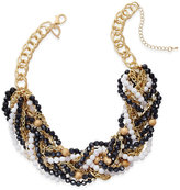 A close-up image of a gold and black knitted necklace with white beads. The necklace features a textured gold chain with a knitted pattern and a clasp. The beads are predominantly white with some black and gold accents. The background is a plain white surface. | Thalia Sodi Gold-Tone Black and White Beaded Torsade Necklace, Only at Macy's | 1764169772d5cd1f5be9d1055d2523b38d80dc459f2163cc1fe7a34b2f3a8f52 | 001065775068 | 0 | 0 | 45 | 12 | 0 | 0 | |