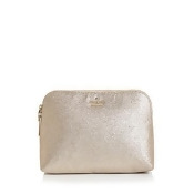 A gold-colored, textured fabric handbag with a flap closure and a logo on the front. The bag has a smooth, shiny surface with a subtle sheen, and it is placed against a white background. | kate spade new york Burgess Court Briley Small Cosmetic Case | 0de68c7538caabb82515bf211180f7829859e97501ef103dc0f09a3d2ae4eb70 | 001065775183 | 0 | 0 | 34 | 10 | 0 | 0 | |
