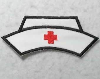 A white nurse's cap with a red cross embroidered on it is placed on a white surface. | Nurse Hat MADE to ORDER - Choose COLOR and Size - Tutu & Shirt Supplies - Iron on Applique Patch 6367 | fec35bd5025c0e559f4bbb1ed942c34c35eae4eda7f9539cdca5e954854645fe | 001065775205 | 0 | 0 | 17 | 21 | 0 | 0 | |