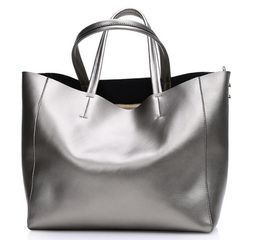 A silver tote bag with a shiny metallic finish and a simple design, featuring a long strap and a zipper closure. | $enCountryForm.capitalKeyWord Canada - Designers High Quality Fashion Genuine Leather Large Shoulder Bag Luxury Women Handbag Brand Designer Large Shopping Bag Casual Tote Cowhide | f0b7d92fe8b56cd7aa3420dc3930fb18d6aac29eaf4e499e6e6bb1992bcbcaae | 001065775200 | 0 | 0 | 21 | 23 | 0 | 0 | |