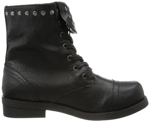 A black leather boot with silver studs on the side and a lace-up front. The boot has a pointed toe, a low heel, and a chunky sole. The upper part of the boot is smooth, and the laces are tied in a bow. | Rocket Dog Brutus Womens Ankle Boots Black eJ8shc | 5e9daf0fab7e46fe9bf6527f609f64fed79ea62aec8b86e485aea7669923c766 | 001065775856 | 0 | 0 | 43 | 8 | 0 | 0 | |