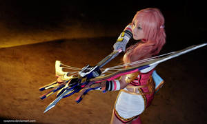 A young girl with pink hair is holding a large, ornate sword with a blue and red hilt. She is wearing a red and white outfit with a yellow belt and a white skirt. The background is dark, and the lighting is focused on the girl and the sword, creating a dramatic effect. | Final Fantasy XIII-2: Serah Farron by vaxzone | a4744b915f1e355b3432075bb127717eb611fc135afe1ee7b3cbc8ceb909ad2c | 001065775842 | 0 | 0 | 53 | 7 | 0 | 0 | |